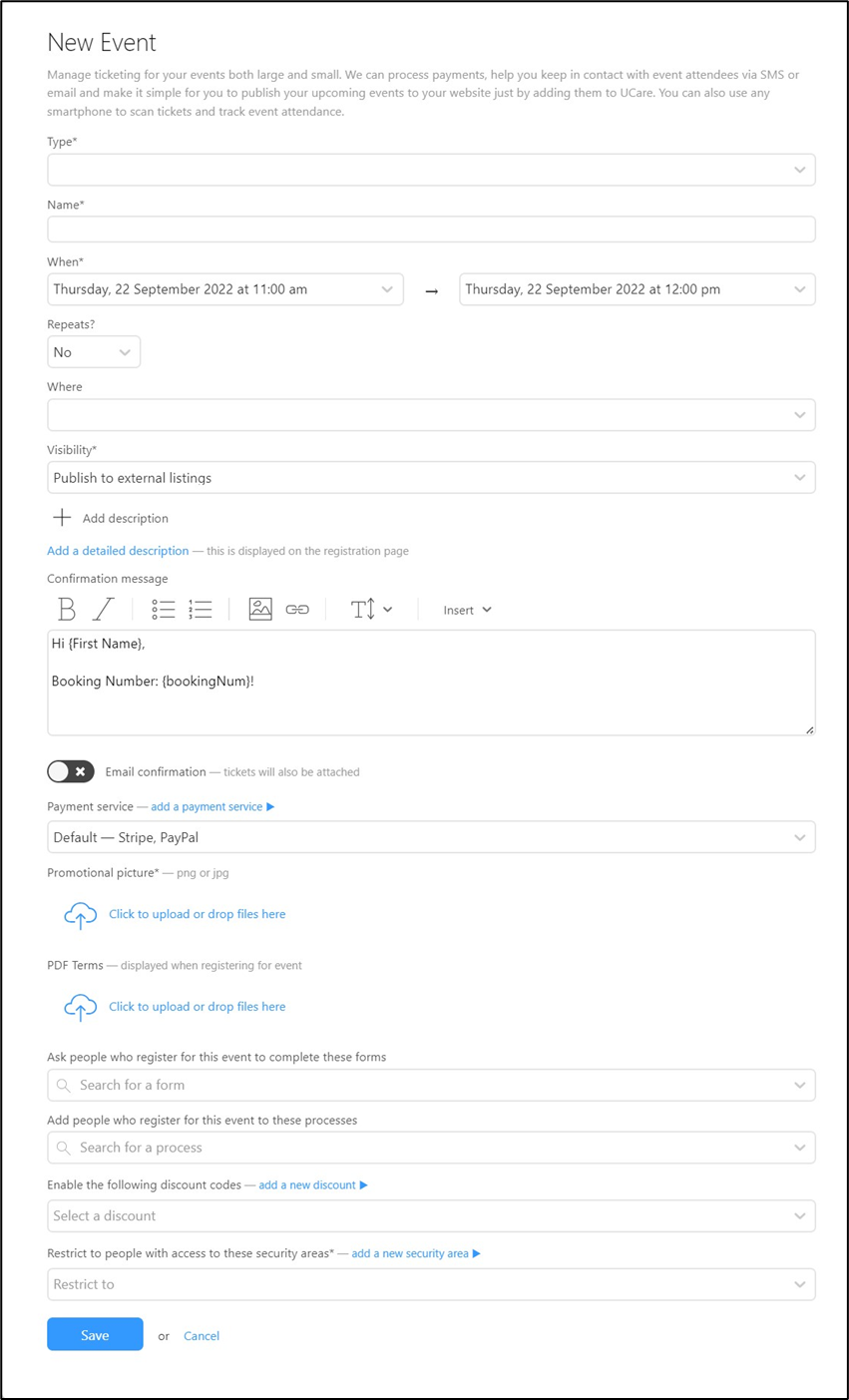 Now that you know how to set up an Event in UCare, you can easily create these as often as you need. In the next Part, we will be looking at Finances and Analytics in UCare.