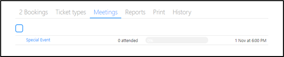 If you are an admin, the History tab displays all the people who have viewed this meeting and all the changes made. For non-admins, the history tab shows all your updates.